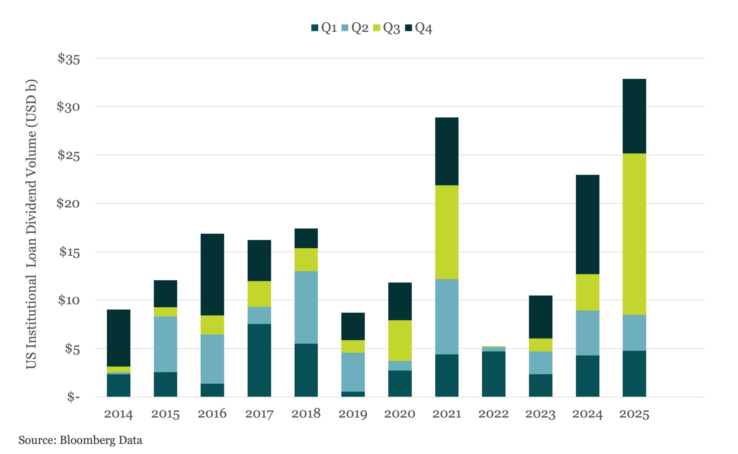 With just two weeks before the start of the new year, dividend issuance has reached an all-time high in the US leveraged loan market. At $32.9b year-to-date, new money issuance supporting dividends surpassed 2021’s $28.9b figure for the most on record since Bloomberg began tracking the data in 2013.