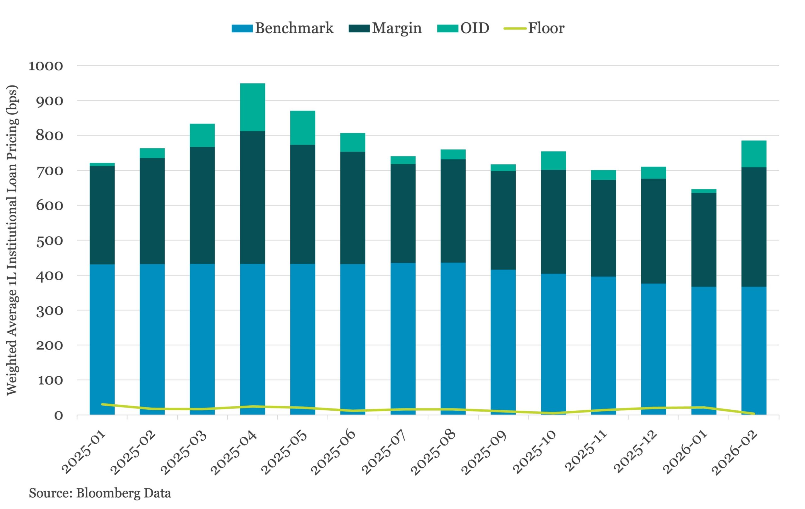 Pricing conditions in the US institutional leveraged loan primary market widened in February, as borrowing costs increased amid a more cautious market backdrop.