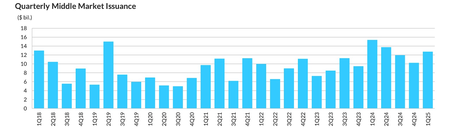 Through Covid and rate hikes, middle market loan issuance has tracked up.
