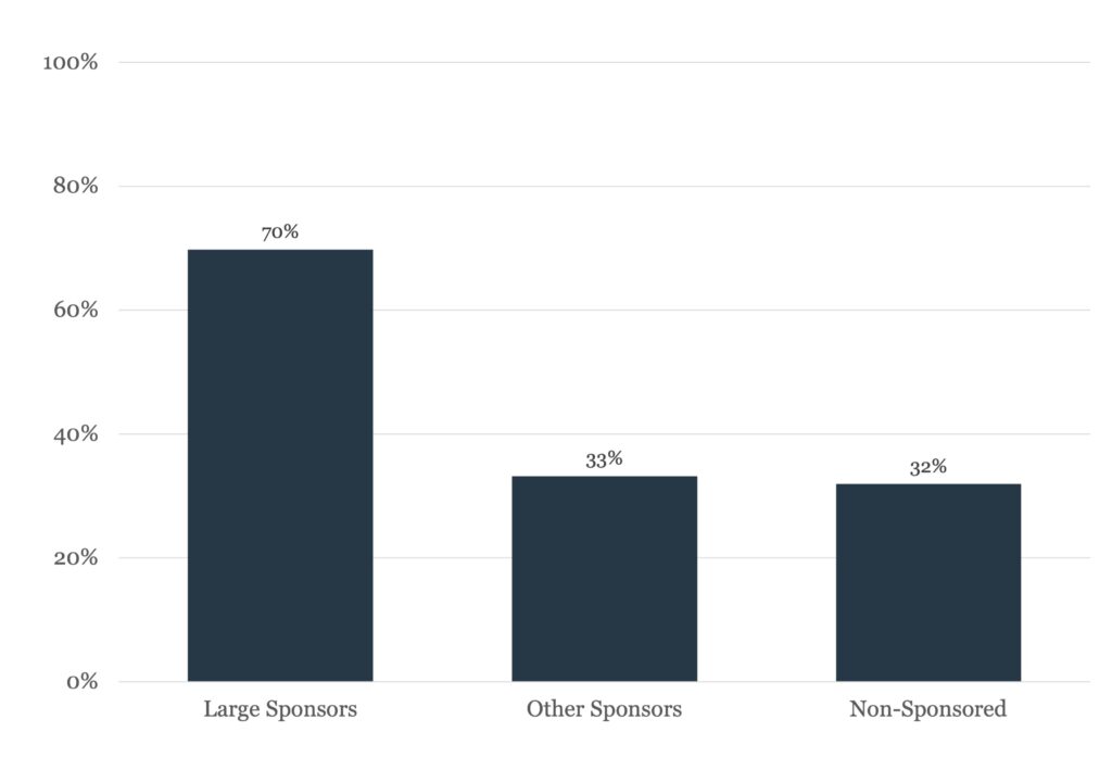 Percentage of Loans that Allow Uncapped Synergies & Cost Savings EBITDA Adjustments, Sponsored v Non-Sponsored (LTM)
