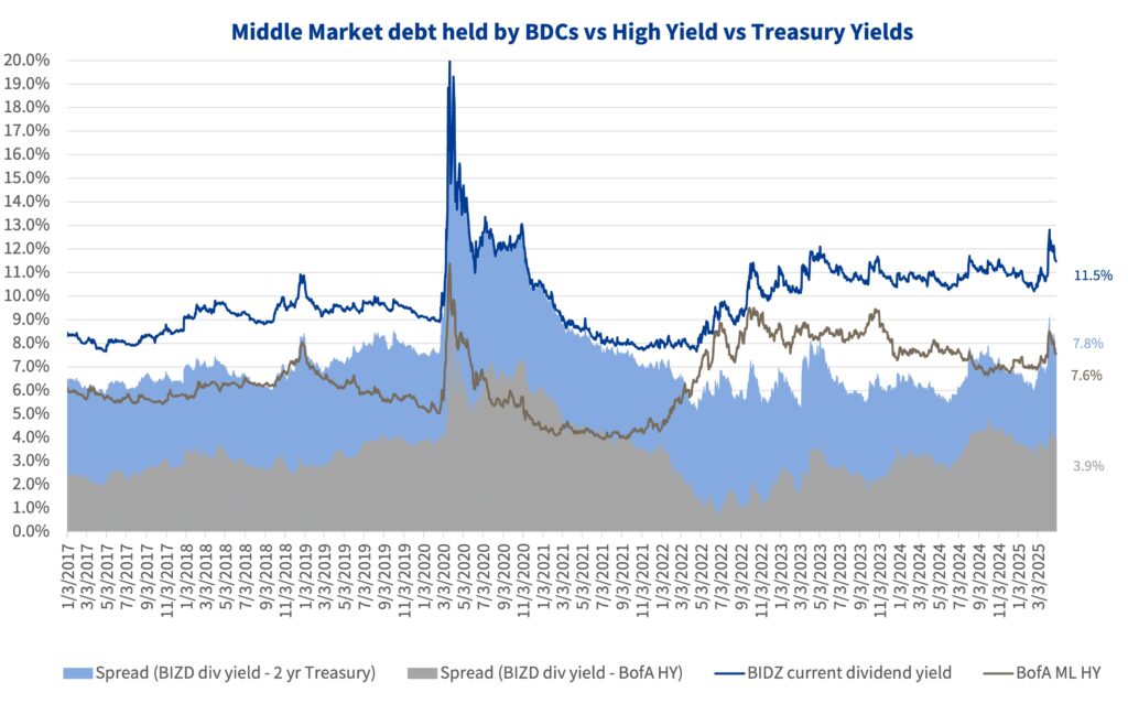 Source: VanEck BDC Income ETF, BofA Merrill Lynch US High Yield Effective Yield