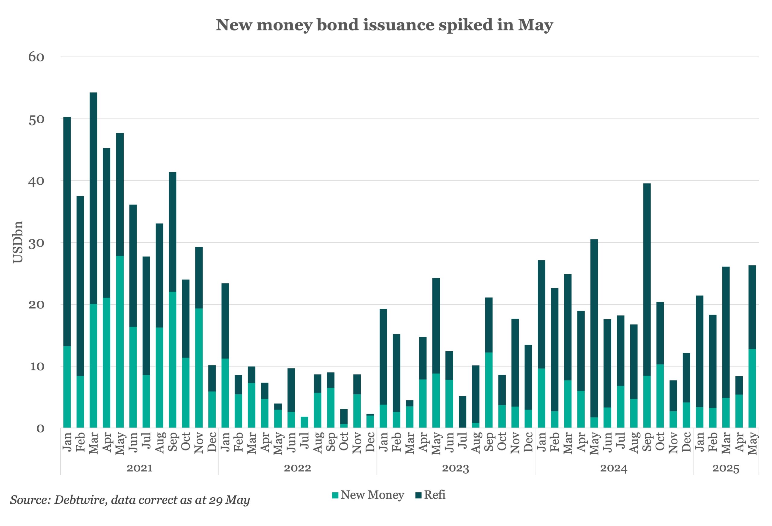 New money high-yield (HY) bond issuance showed signs of a revival in May, following a sluggish period of lower volumes since the start of the year.