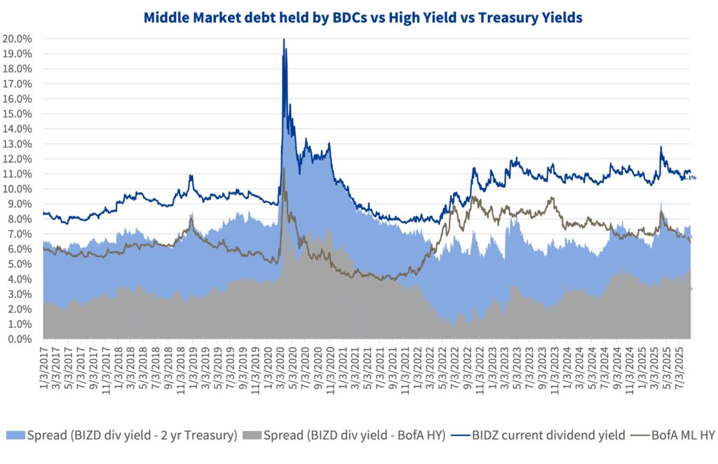 Source: VanEck BDC Income ETF, BofA Merrill Lynch US High Yield Effective Yield