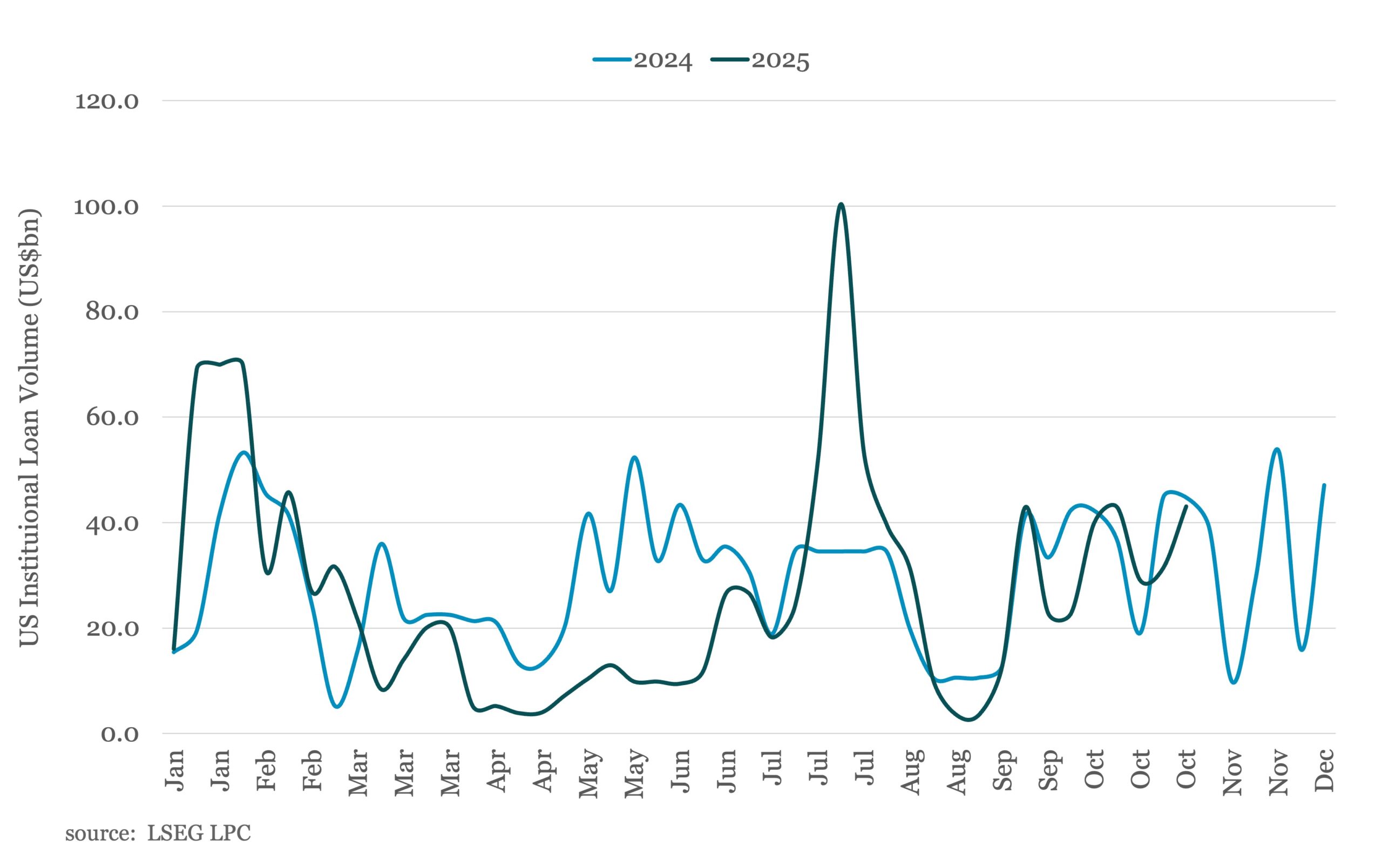 At the end of last week, the forward calendar for institutional loan assets topped US$43bn, the highest level since July of this year.