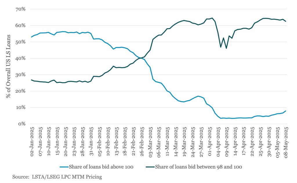 In the wake of headline making talk of tariffs – and implicitly fears of a trade war – in April US loan investors pulled back in the secondary causing average bids to come off highs before showing signs of a modest recovery in May.