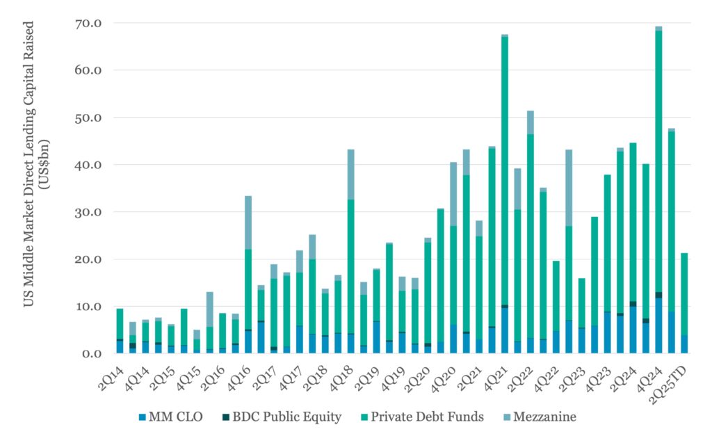 US middle market private debt fundraising stands at US$21.3bn so far in 2Q