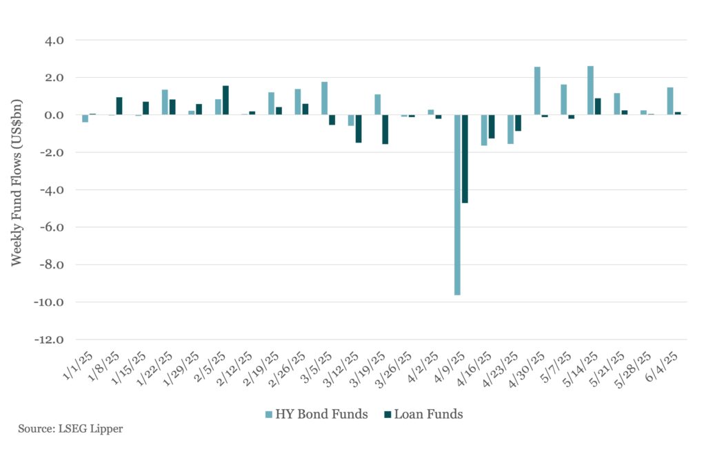 Following the bout of market volatility and accompanying large outflows posted in April, both loan funds and high yield bond funds have turned the corner and posted inflows in recent weeks as investor sentiment improved across asset classes.