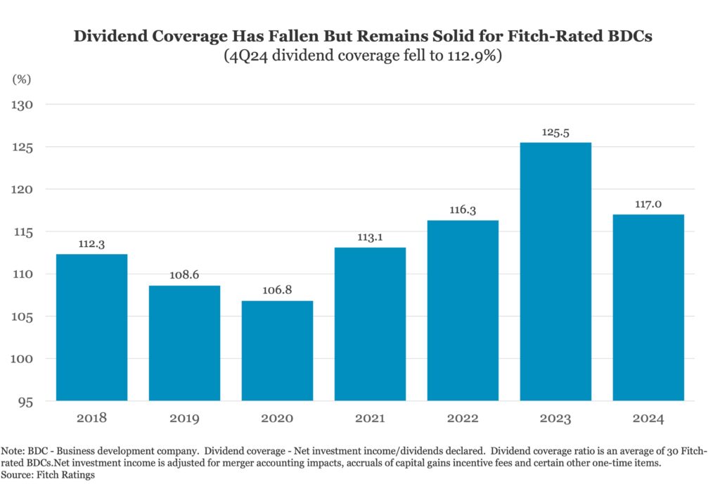 Fitch’s 2025 sector outlook for BDCs remains ‘deteriorating’ as continued spread pressure and additional non-accruals will likely weaken earnings and dividend coverage for BDCs in 2025.