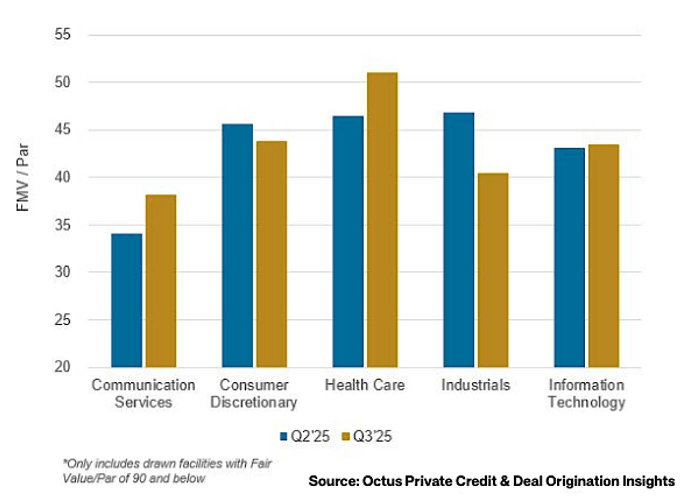 Average Marks (FMV / Par) on Non-Accrual Drawn Loans Increased for 3 of the Top 5 Sectors in Q3’25