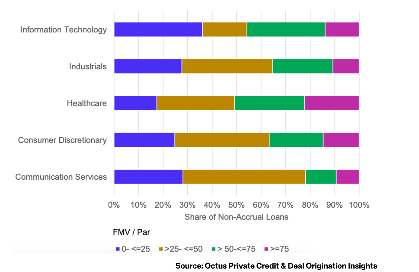Over One-third of the Information Technology Sectors’ Non-Accrual Loans Were Marked at 25 or Below as of Q3’25