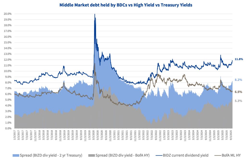 Source: VanEck BDC Income ETF, BofA Merrill Lynch US High Yield Effective Yield
