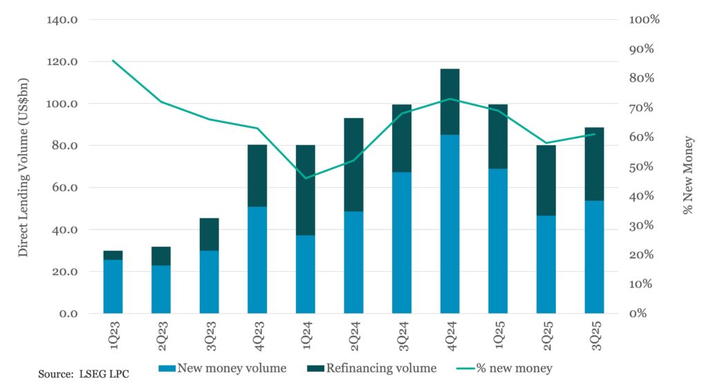 3Q25 US direct lending loan volume up 10.5% Q-o-Q amid flush of new money activity