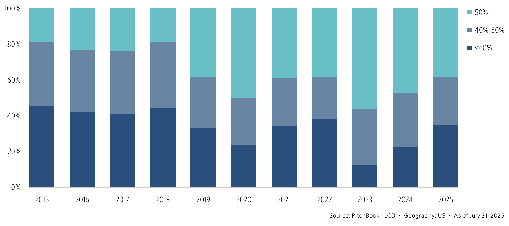 Share of BSL-financed LBO count by equity contribution